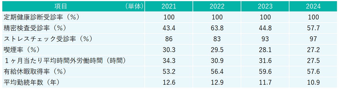 本公司以“健康经营宣言”为基础,为了员工及其家属的健康,实施各种措施。