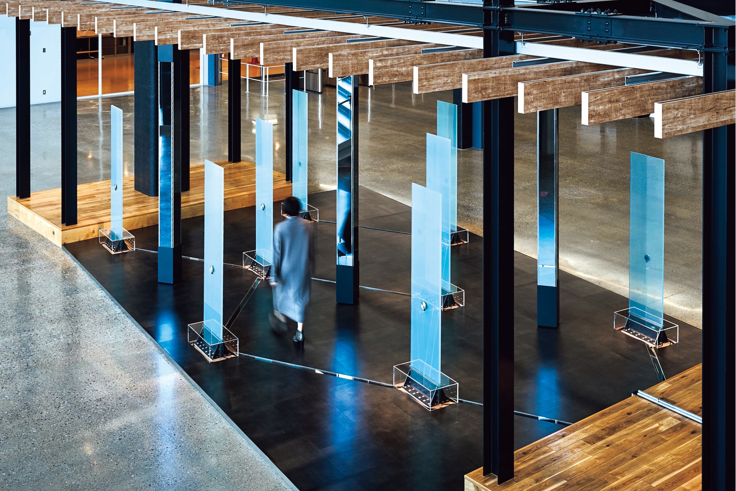 AGCとコラボしたインスタレーションの「Inside of Material」。ガラスにまつわるさまざまな技術をメディアとして捉え、空間の配置、音や透明度、映像によって立体的な空間体験をつくった