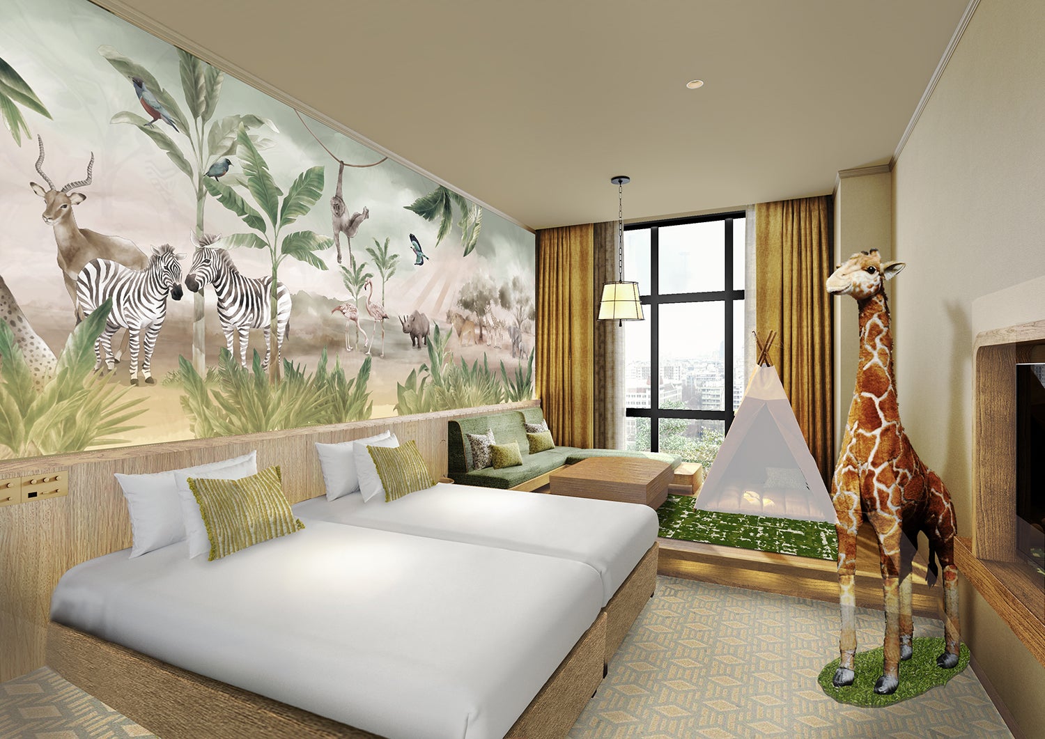 大自然の中でグランピングしているような、冒険心をくすぐる空間をイメージ