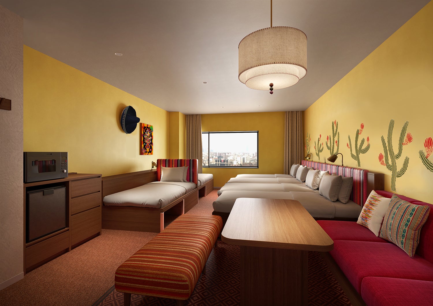 “TRAVELOGUE=異国の旅の記憶”のコンセプトを体現した空間と、快適な旅をサポートする機能を兼ね備え、旅のプロローグとエピローグを彩る滞在を提供。客室は、ご家族連れやグループでのご利用に合わせ、4名利用を中心に最大6名様までご宿泊いただける多様なタイプを揃えており、世界の4つの海をテーマにデザインしました。