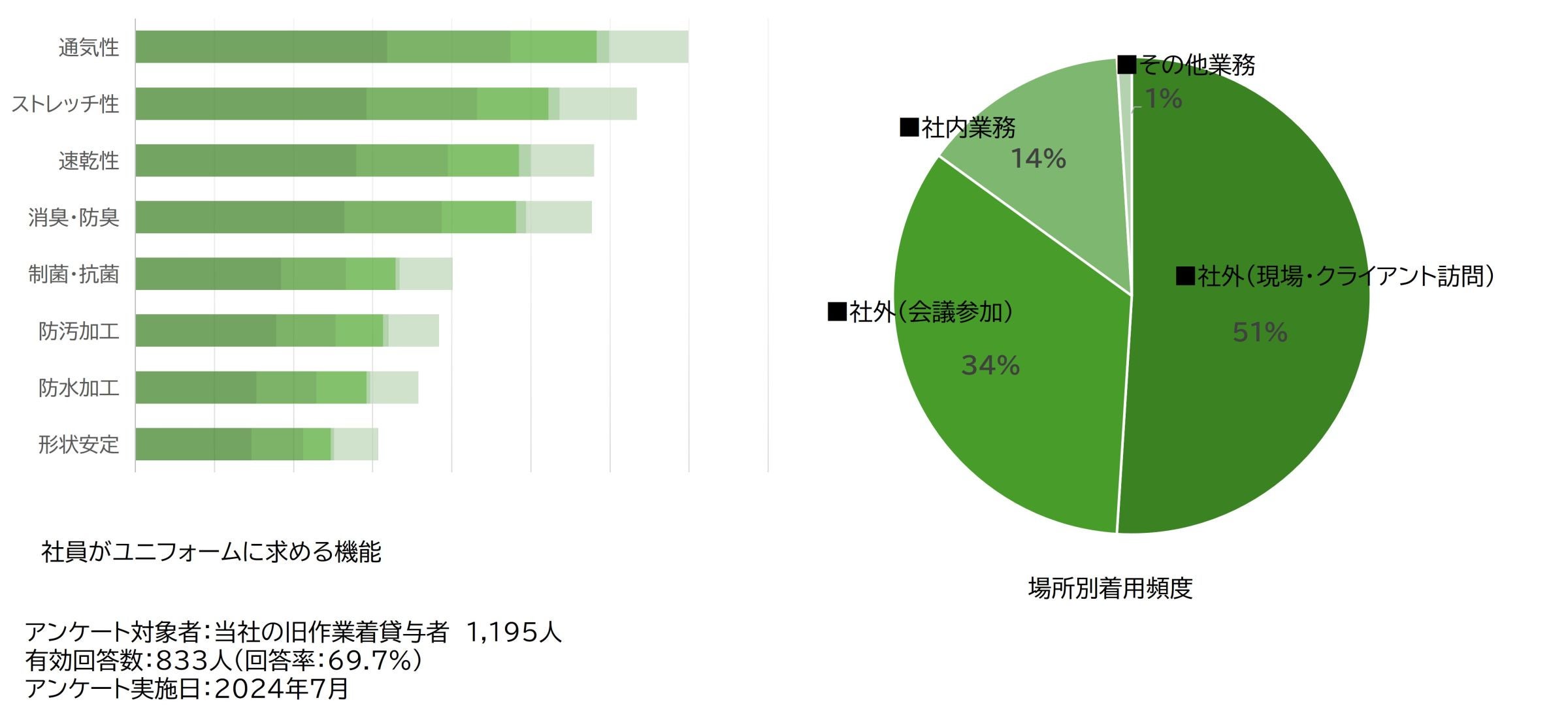 ※1 アンケート対象者・・・対象:乃村工藝社の旧作業着貸与者 1,195人/有効回答数:833人(回答率:69.7%)/アンケート実施日:2024年7月