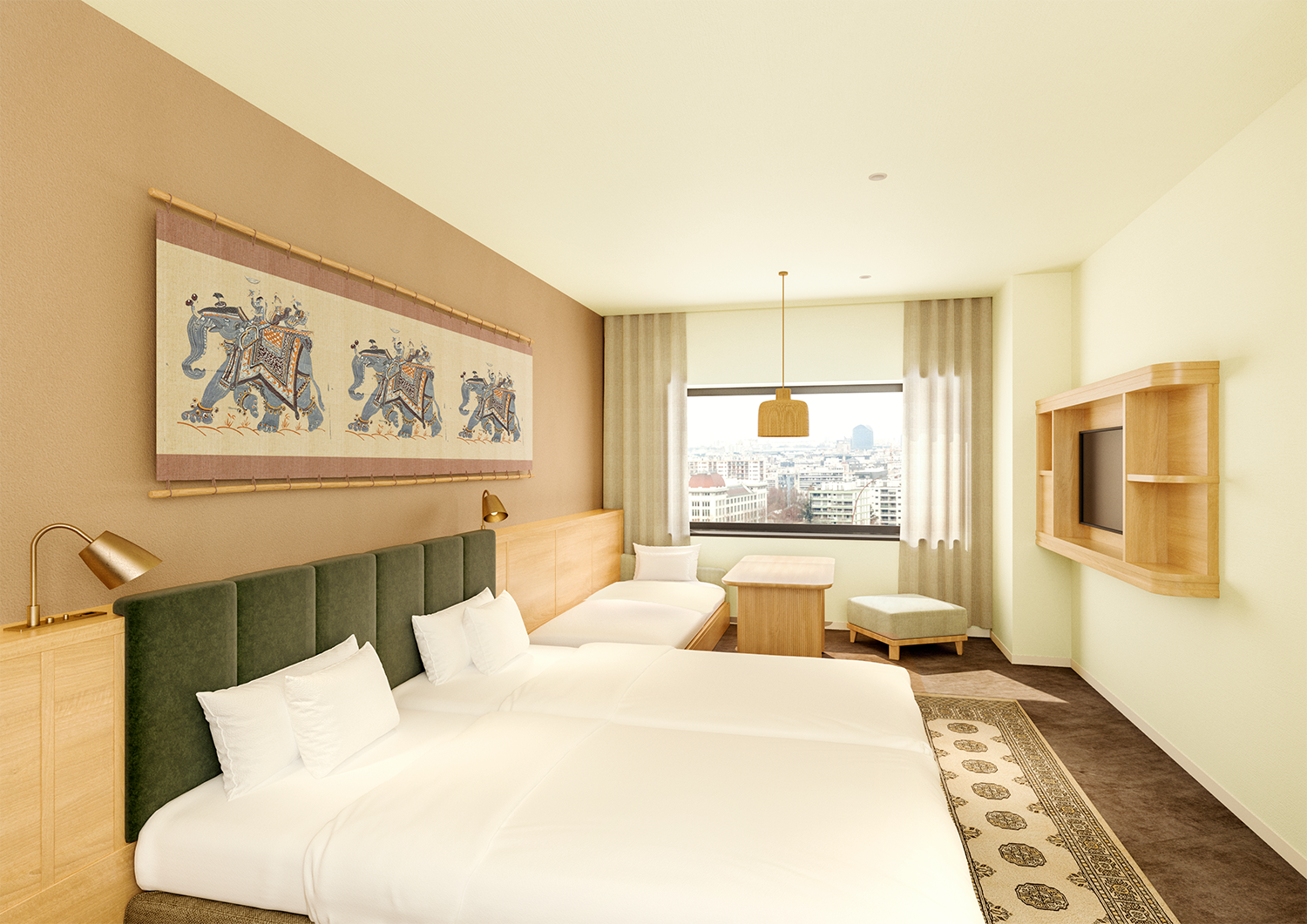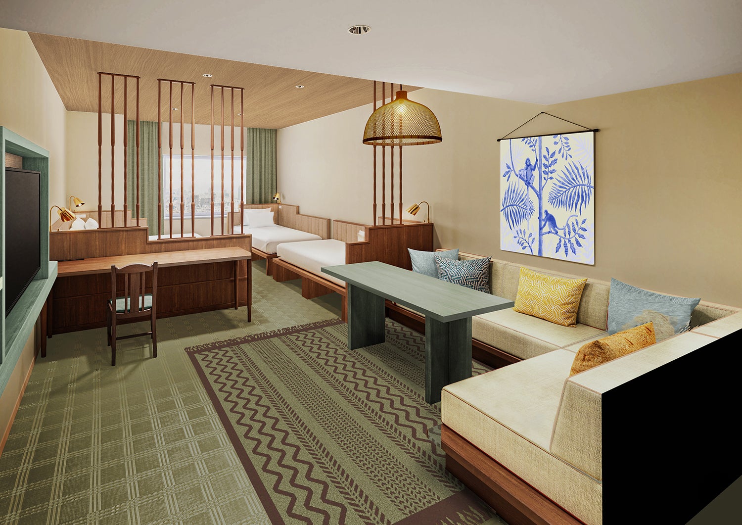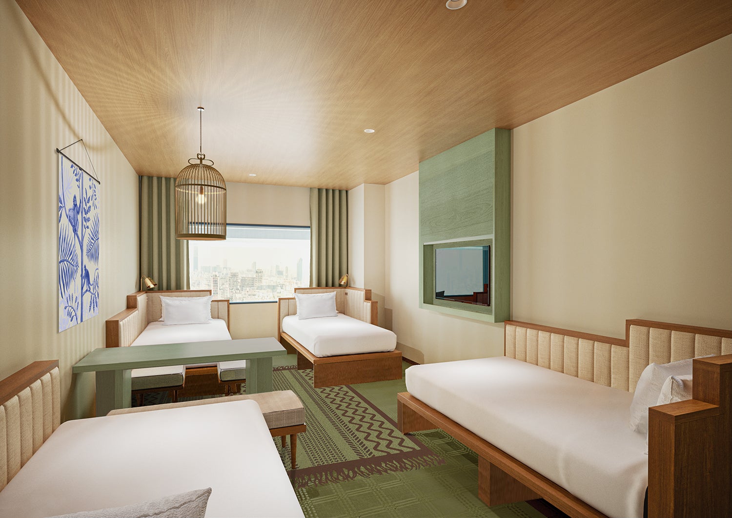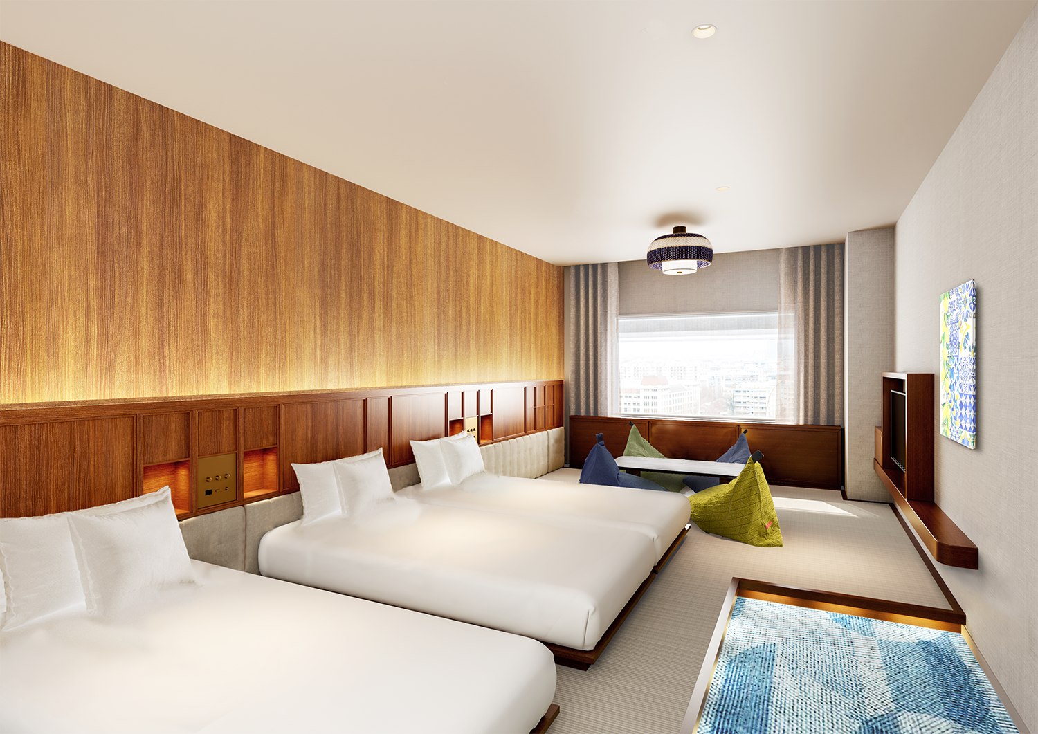“TRAVELOGUE=異国の旅の記憶”のコンセプトを体現した空間と、快適な旅をサポートする機能を兼ね備え、旅のプロローグとエピローグを彩る滞在を提供。客室は、ご家族連れやグループでのご利用に合わせ、4名利用を中心に最大6名様までご宿泊いただける多様なタイプを揃えており、世界の4つの海をテーマにデザインしました。