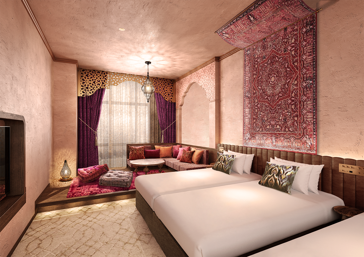 まるで物語の中に迷い込んだような、幻想的で異国情緒あふれるアラビアンをテーマにした客室